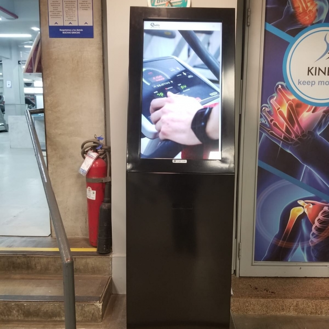 Perfecta para publicidad digital e interacción con productos, servicios y otros contenidos en shoppings y centros comerciales, esta terminal cuenta con estructura de chapa pintada en epoxi al horno y un panel de vidrio de 6 mm que protege la pantalla táctil, brindando una excelente estética.