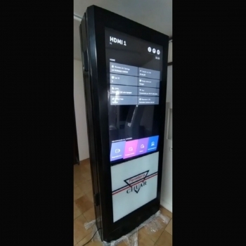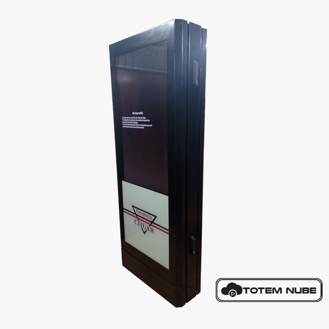 El equipo consta de un gabinete INDOOR metálico para posicionamiento de dos pantallas profesionales o estándar para publicidad digital. El mismo consta de: